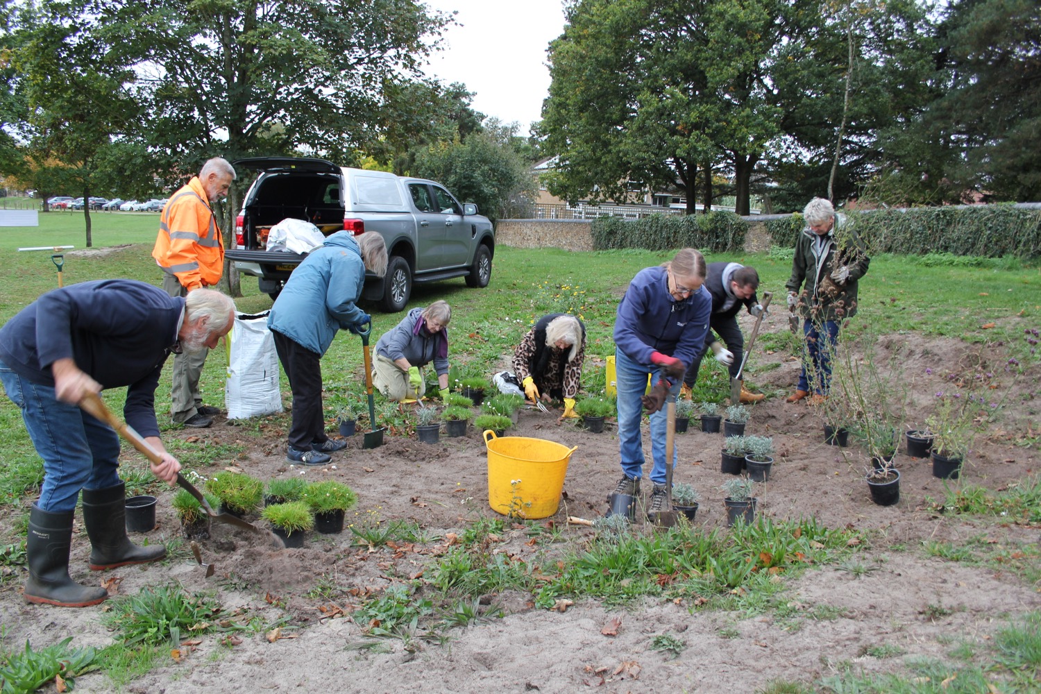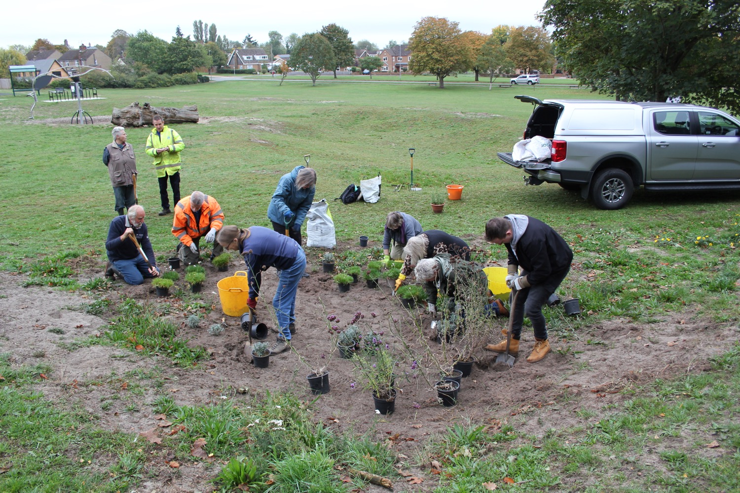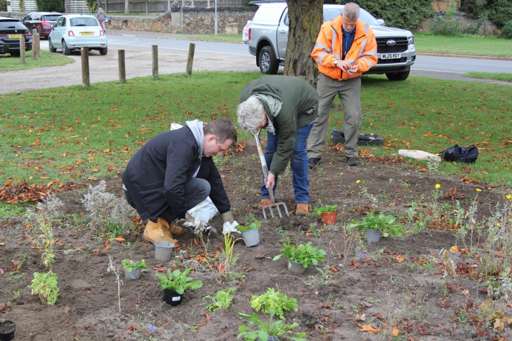 A happy crowd of Nature Volunteers met on the 9th of October 2025 to plant insect friendly plants and seeds. Chris Walker, the newly appointed biodiversity officer at Borough Council of King’s Lynn & West Norfolk, brought his knowledge and experience to the planting and it was a very productive and satisfying morning.